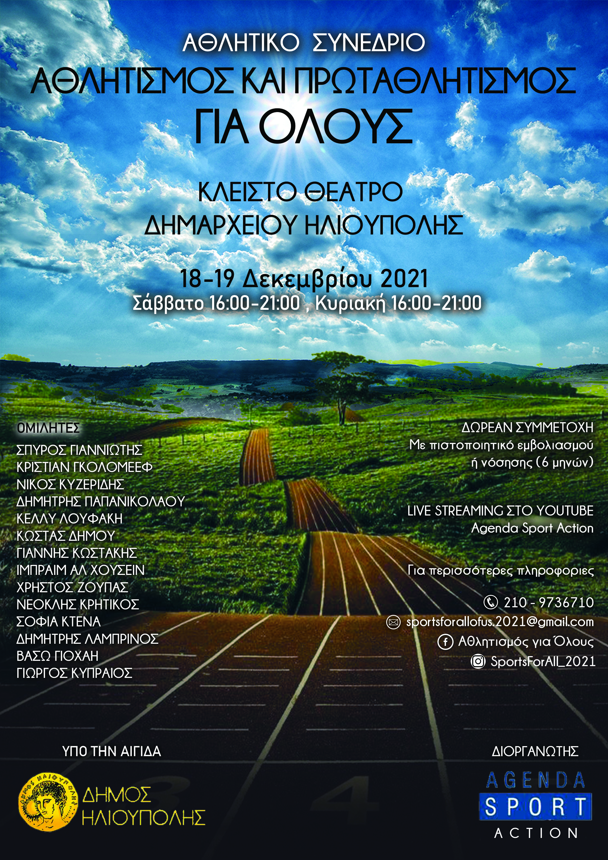 Ο Δήμος Ηλιούπολης διοργανώνει το 2ο Αθλητικό Συνέδριο, με θέμα «Αθλητισμός και Πρωταθλητισμός για όλους», στο Κλειστό Θέατρο του Δημαρχείου Ηλιούπολης, το Σάββατο και την Κυριακή 18 και 19 Δεκεμβρίου 2021, από 16:00 έως 21:00, με ελεύθερη είσοδο για τους ενδιαφερόμενους.
