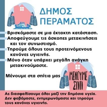 Ανακοίνωση του Δήμου Περάματος για τα μέτρα πρόληψης του COVID-19